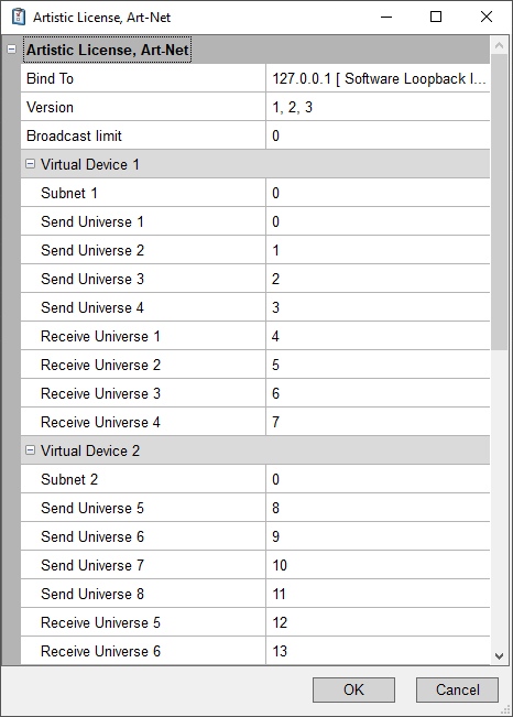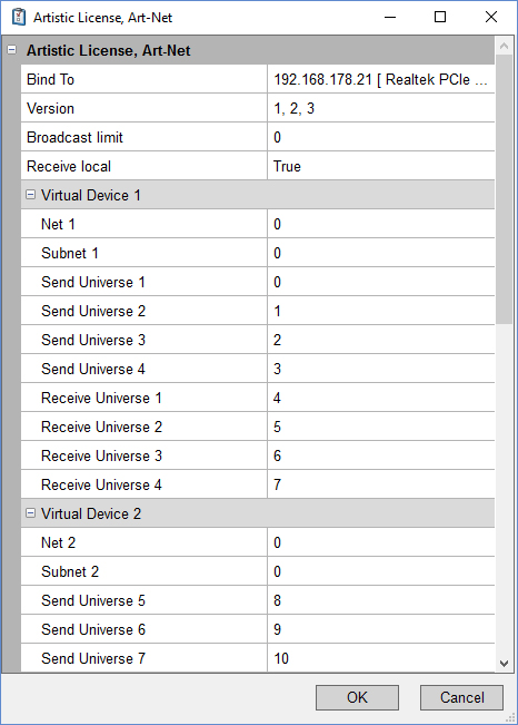 Allerdings ist mir doch noch was aufgefallen, wo die "frische" Installation von DMXControl 3.2 anders arbeitet, als meine "Bestandsinstallationen", wie in den beigefügten Screenshots zu sehen sind. Bei letzteren finde ich im Dialog noch den Eintrag "Receive local". In der Datei libartnet-1.dll steckt diese Information jedoch nicht, denn ich hatte die Datei einfach mal auf meinen neuen PC übertragen - sie liegt nämlich auch auf meinem alten PC an der gleichen Stelle.