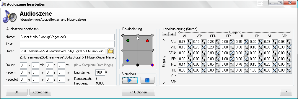 Ich habe neulich die Bass.dll nochmal genau angesehen. Der Matrix-Mixer bietet geniale Features. Ich habe damit eine sehr einfach zu bedienende Raumpositionierung von Audioszenen programmiert.