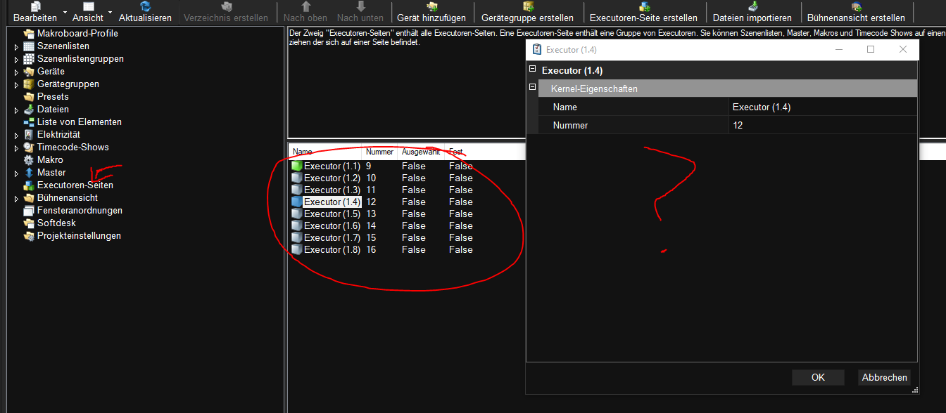 Ich lege im Projektexplorer eine neue Executorseite an. Wähle diese Seite aus, sodass ich im rechten Fensterteil die einzelnen Executoren sehe.