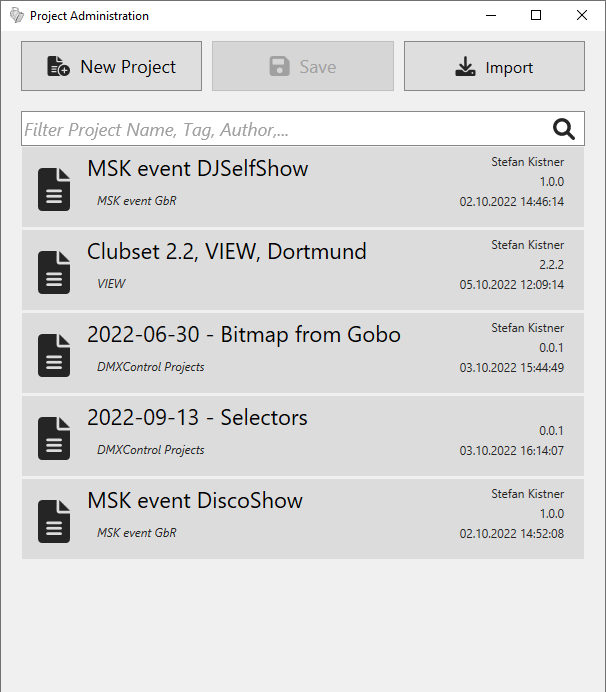 Ich habe bei mir nun fünf Projekte neu importiert und diese teilweise auch gespeichert. Die Sortierung in der Liste mit den verfügbaren Projekten ist aber nicht nachvollziehbar und eher zufällig.