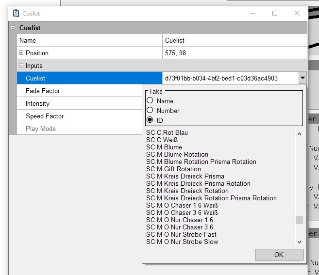 Wenn ich in den Proberties des Cuelist Nodes nachsehen möchte welche Cuelist ausgewählt ist, ist da so nicht möglich.