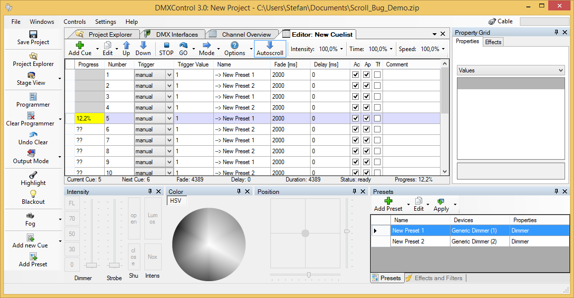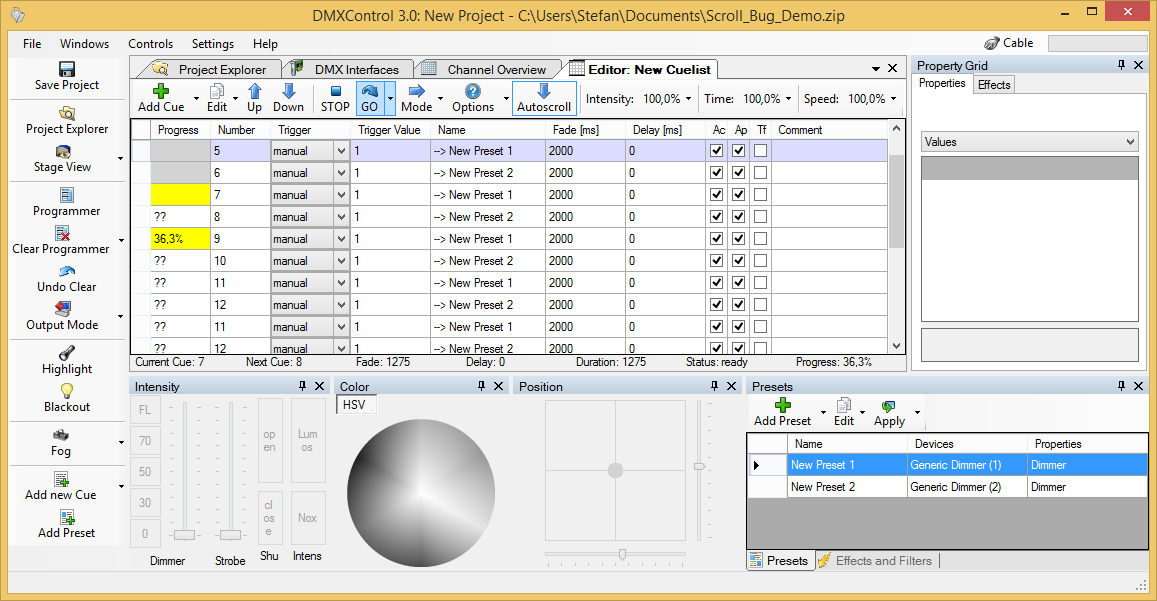 * sicherstellen, dass Autoscroll für die Cueliste angeschaltet ist