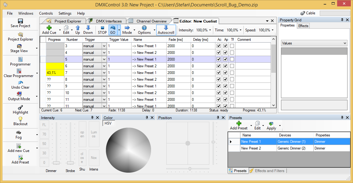 Nun sollte (und wird) der Cue 6 eingefaded.