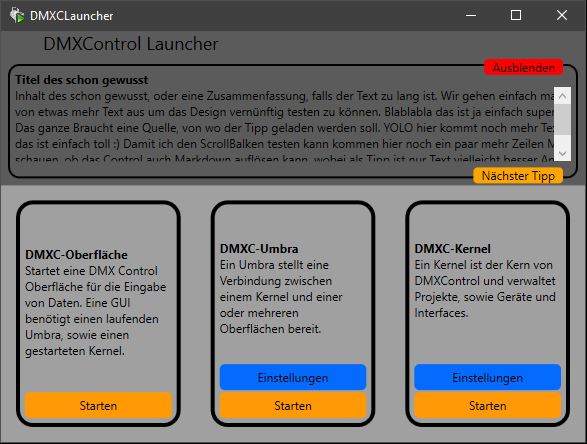 - Schon gewusst Fenster und DMXControl Launcher Überschrift Grau hinterlegt