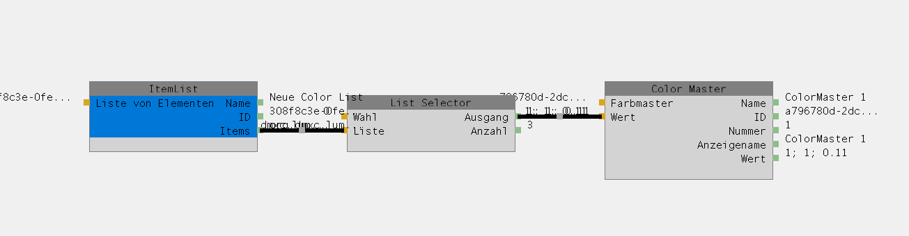 Wenn man das “ItemList” Node mit einem “List Selector” und dann auf einem “ColorMaster” legt dann wird das ItemList Node nur gespeichert wenn es noch nicht einer Item Liste zugewiesen wurde. Siehe in dem Screenshot So Gehts.png. Wenn man in dem ItemList Node eine Liste einträgt dann wird das Node nach dem Laden entfernt.