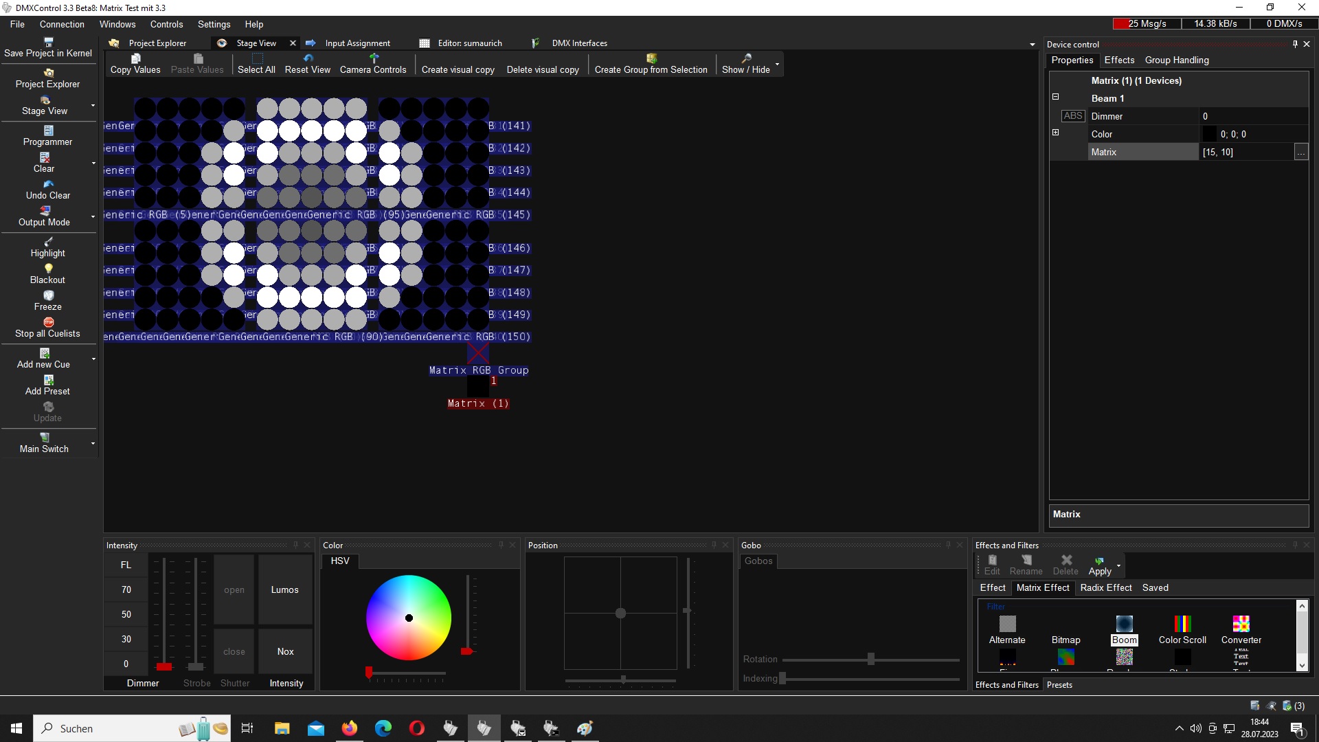 Auch Effekte die in Cuelisten eingebunden wurden machen keine Probleme.